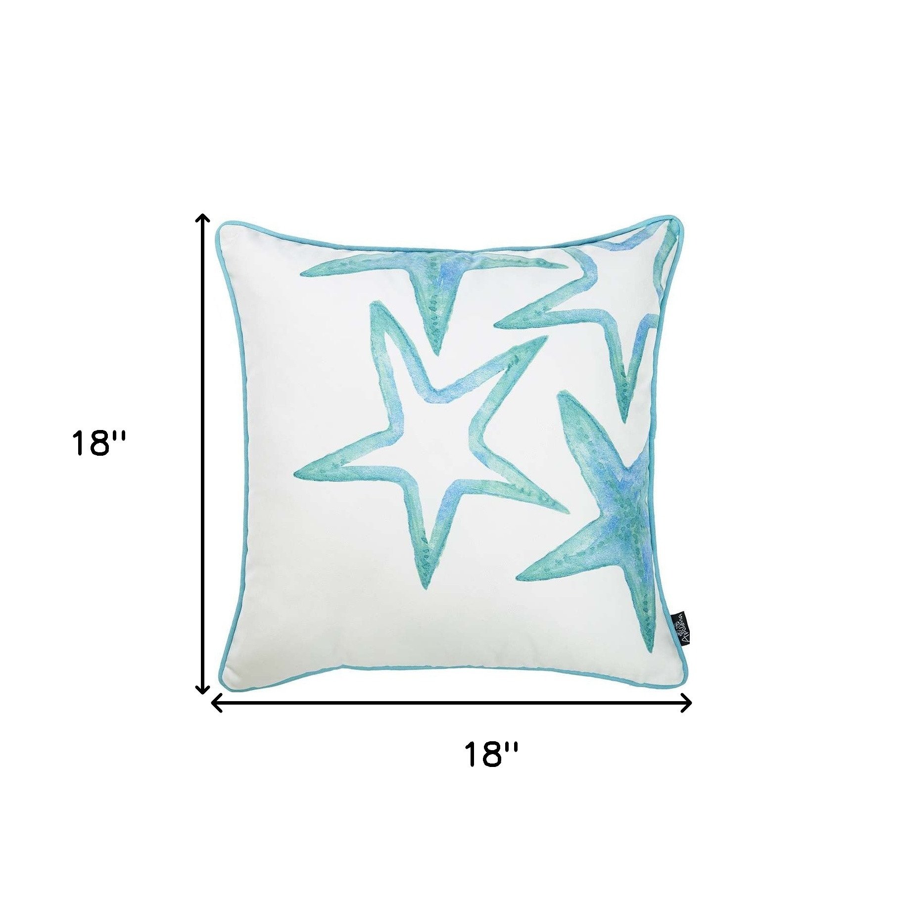 Let the star twinkle right in your living room with this beautiful Aqua Blue Watercolor Stars Throw Pillow. Featuring a flawless white background with aqua blue stars resembling a lovely watercolor artwork, while the pastel blue piped edging adds a definitive frame to the piece. Crafted in Turkey with 100% brushed polyester for long-lasting durability and color intensity that will last for years to come. This decorative pillow sports a hidden zipper closure all around for a clean and seamless finish while the soft polyfill insert adds to a luxurious feel and comfort. With an OEKO-TEX Standard 100 certification, this pillow fabric ensures top-notch quality and product safety. Decorate your living space with this cool-toned throw pillow that will create a spectacular contrast when placed against any dark-toned décor. 18" x 18" x 1"