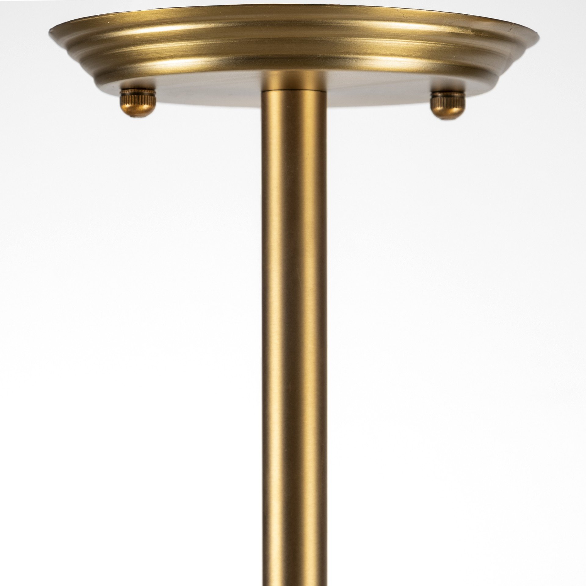 Add a touch of industrial design to your home with this Gold Metal Eighteen Bulb Hanging Chandelier. This hanging light is made from solid metal and has a very simple contemporary feel to it. There is one metal rod that runs down from the ceiling to the main body of this hanging chandelier. In the middle of the body there is a thick gold cylinder that has thin metal rods coming out of it. These rods have small bulb holders on the ends of them. The glass bulb shades also add to the industrial feel with small filament bulbs inside them which have a very bright yet diffused light. Elevate any space you want around your home with this hanging light. 16" H x 50.5" W x 50.5" D