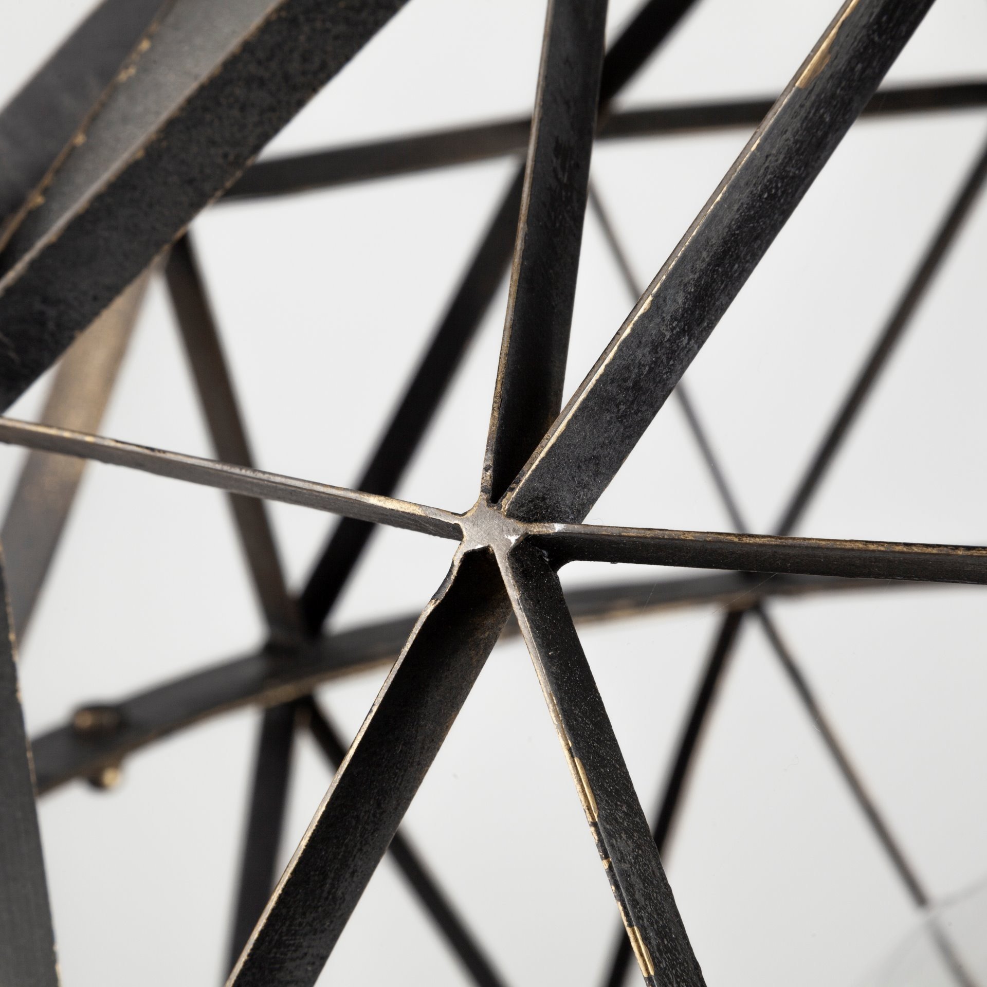 With this Black Metal Geometric Globe Hanging Light you can add the perfect lighting centerpiece to any room in your home. The shade of this hanging light is made from thin metal rods that are arranged in a sharp geomtric pattern in a globa shape. The color of this shade is in a rustic black matte finish which adds to the contemporary and modern look of this hanging light. Inside the see through shade there is a gold bulb holder which is connected to the top. There is also a matching chain that will help you hang it up in. The whimsical geometric shapes that relfect around the room with the ambient lighting of this hanging light. You can use it in the hallway, in your living room, or in your kitchen or dining spaces as focused lighting. 18" H x 18" W x 18" D