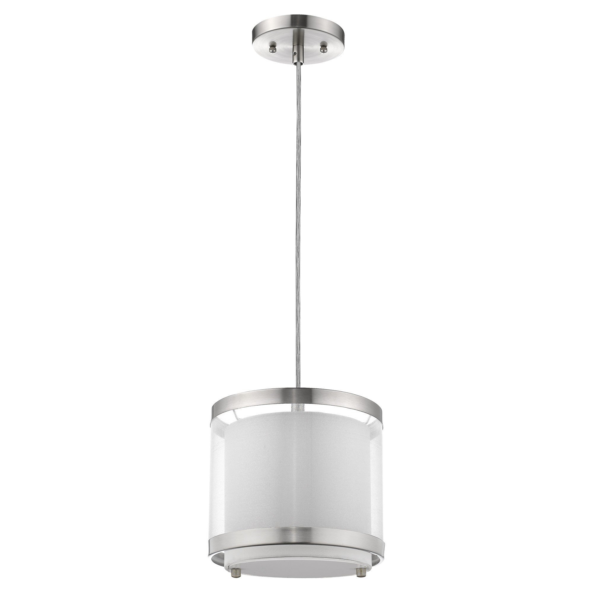 White and Silver Hanging Light with Fabric Shade