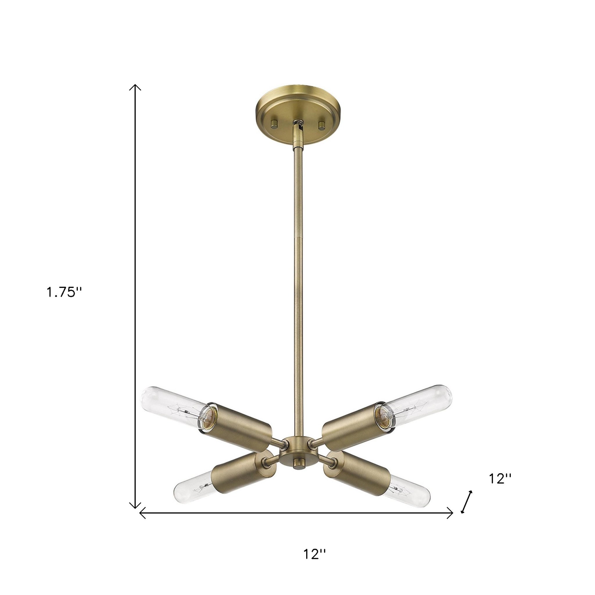 This beautiful gold four light metal dimmable chandelier will brighten up and change the look of your room. With its gold finish, this light fixtue oozes with rich charm. This light will require hardwiring installation. This fabulous hanging light is a great way to add some design and brightness to any space in your home. 1.75-inch H x 12-inch W x 12-inch D