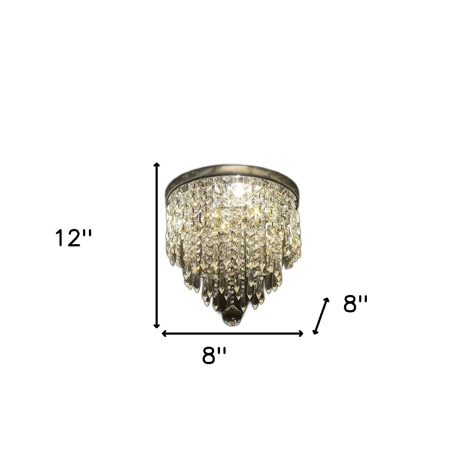 Dress up your entryway, dining room, kitchen, or bedroom with this shaded globe transparent glass and crystal dimmable ceiling light with clear shades. This fixture features sparkling glass/crystal to reflect light from every angle that will bring radiant warmth to your home. A silver finish, gives this light a classic and neutral tone to blend into many decor styles. This light will require hardwiring installation. Get creative and change up the look of any room from Hallway, to Closet, to Office or Bedroom with this gorgeous hanging chandelier light fixture. 12-inch H x 8-inch W x 8-inch D