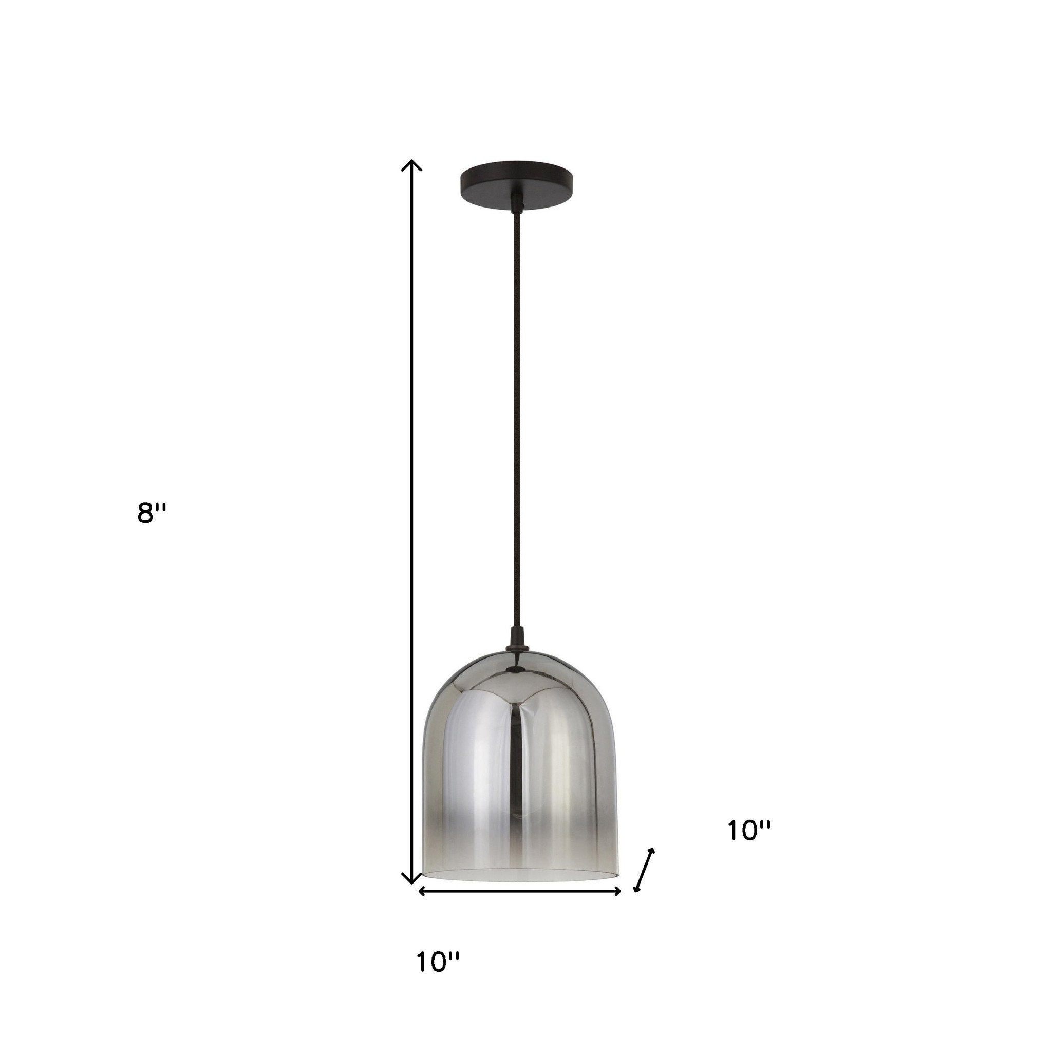 This beautiful 10" gray smoked glass dimmable bell shape pendent ceiling light will brighten up and change the look of your room. Light bounces off of this hanging fixture's glass to sparkle for a glamorous look. A gray smoky silver finish, gives this light a classic and neutral tone to blend into many decor styles. This light will require hardwiring installation. Use this lighting fixture as the focal point of your hallway, dining room, living room, bedroom. 8" H x 10" W x 10" D