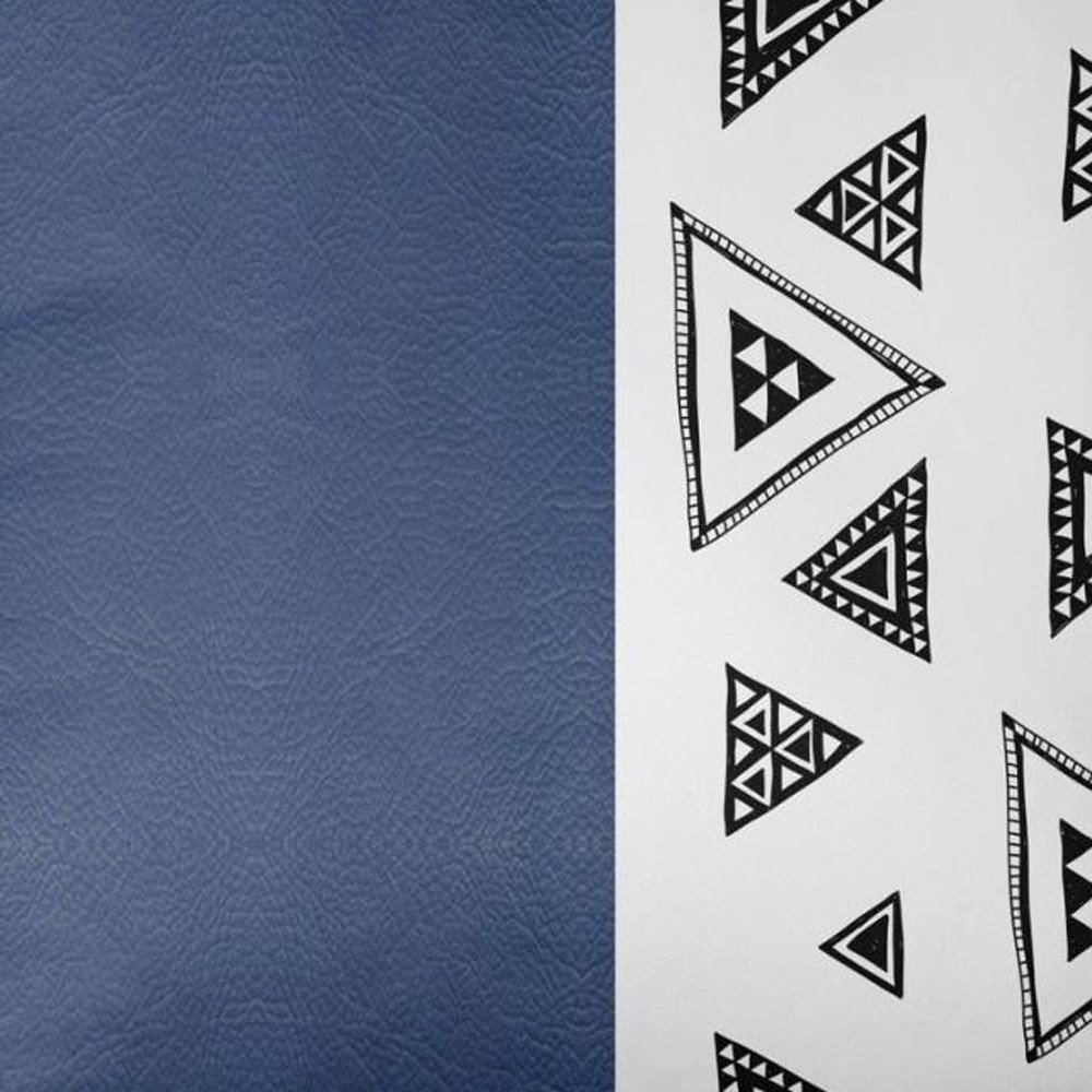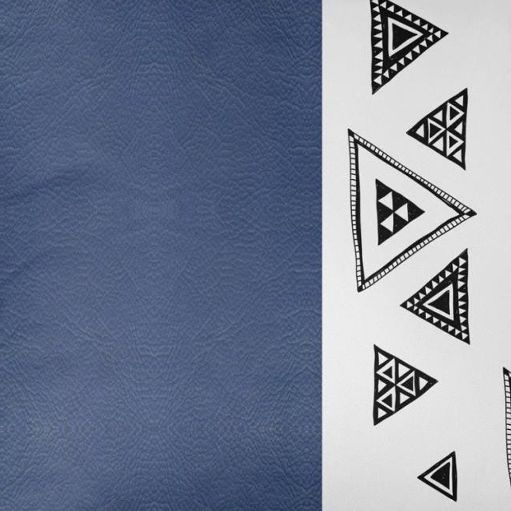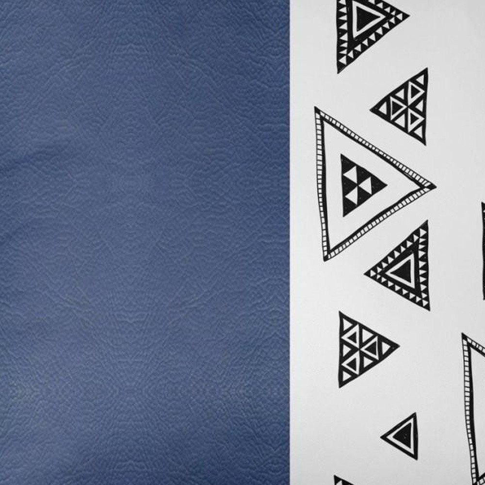A fusion of trend and tradition is depicted in this Navy Triangular Motifs Faux Leather Throw Pillow that fits in almost anywhere with its subtle natural hues. The uniquely designed square-shaped pillow features a traditional navy blue faux leather on one half and a polyester fabric with geometric triangular patterns on the other half. Besides having a hidden zipper all-around, the product is also OEKO-TEX Standard 100 certified which speaks for quality and safety. It comes with a soft and luxurious poly filling for a fluffy and comfortable feel. Give your living space a playful countryside appeal with this eye-catching leather pillow on the bed, couch, or sofa 18" x 18" x 1"