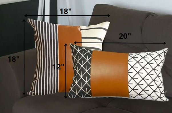 The exquisite pattern and warm-toned palette of this Set of 2 Brown Boho Geometric Throw Pillow Covers will create a cozy and stylish look with a rustic charm. With one square and one lumbar pillow, this pair flanks a rustic brown-toned vegan faux leather bank with monochromatic geometric patterns on two sides to accentuate a boho-chic vibe. Expertly crafted by Turkish artisans, these covers comprise polyester, Pvc, and Pu for optimum durability while being OEKO-TEX Standard 100 certified to ensure the highest product safety. The hidden zipper closure provides a clean and seamless finish around the edges for a luxurious feel on the touch. This stunning pair of pillow covers will perfectly blend in with a wide variety of color schemes and make your guests feel more welcoming. 18" x 18" x 1" & 12" x 20" x 1". Set of 2.