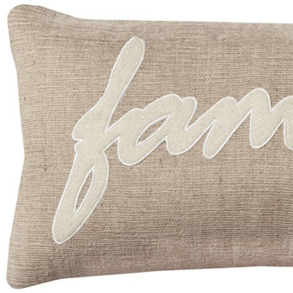 The 21-inch x 11-inch tan cotton blend zippered pillow with applique is the perfect decorative accessory for your home. This soft and durable decorative pillow is expertly made of high grade, long lasting cotton blend in a tan coloration. Fun and decorative applique add some high end and hand-crafted textural designer touches. Super soft and built to hold its shape, this polyfill pillow is a great option. Emblazoned with the text family this pillow adds some visual interest and decor to your space. Decorative throw pillows not only add color and dimension to your space but can be comfy and supportive when you are lounging and cuddling as well. A great decorative accessory for your favorite chair, to accent your sofa, or to use as part of your bed ensemble. 21-inch H x 11-inch W x 6.25-inch D