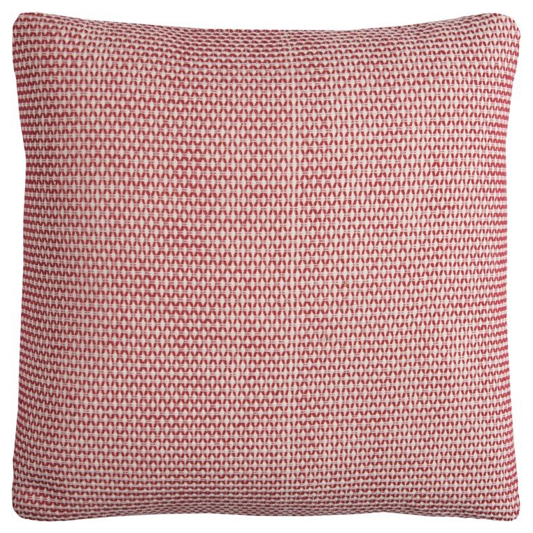 Embrace a simple modern aesthetic into your living room with this minimal Red Ivory Scaled Diamond Pattern Throw Pillow. The red and ivory weave of the pillow is a small diamond pattern, almost making it look solid with a beaded texture that looks subtle and sophisticated at the same time. The hidden zippered pillow features a washable machine fabric on both sides, making it very easy to maintain. The pillow has a polyfill insert that offers maximum comfort and coziness to give you the best resting experience. Paired with modern décor amongst clean lines and neutral tones or as a standout piece by itself, this throw pillow can carry any interior style with versatility. 22" x 22" x 6.25