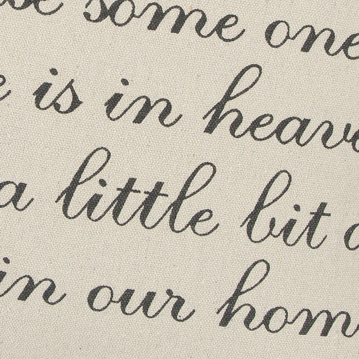 The perfect complement to your sofa, favorite chair, or bed, this 20-inch natural and gray cotton throw pillow is a great decorative accent. Give a nostalgic tribute to your loved one with this beautiful and emotional pillow. The memorial statement in gray is flaunted over a cream/natural background in a pretty cursive font for a modern and sophisticated appeal. This pillow is a great accent piece to remember a family member not by our side anymore but in our heart's forever. The lightly textured cotton canvas makes this poly-filled pillow soft and durable to last for a long time and meet the aesthetics of multiple design styles 20-inch H x 20-inch W x 6.25-inch D