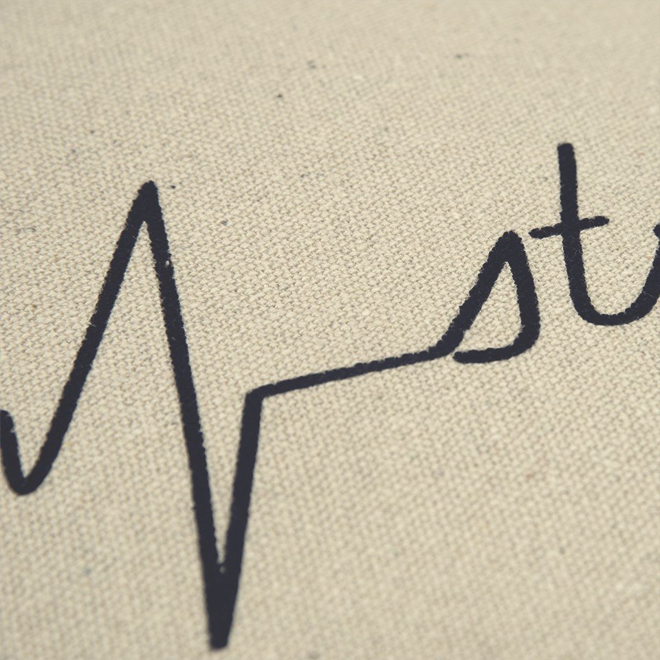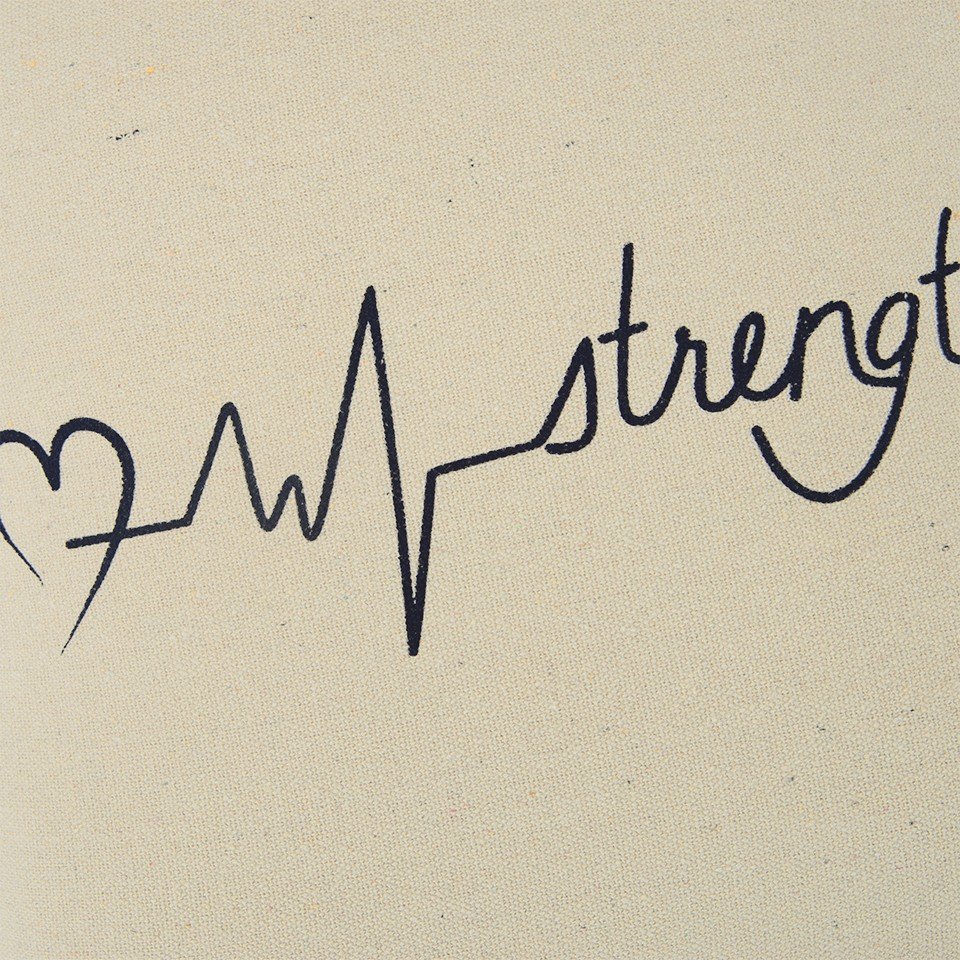 Evoke a sense of love and strength in the atmosphere with this Black Taupe Canvas Strength Throw Pillow in your living room. The alluring design in jade black over the taupe background symbolizes love, hope, and strength to uplift the ambiance of your modern space with a heart-touching sentiment.