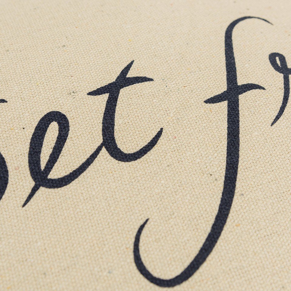 Find the freedom in faith with this thoughtfully designed Black Beige Canvas Set Free Still Throw Pillow in your modern living space. The beautifully printed phrase 'set free' in jade black is portrayed over a soft beige background, emphasizing simplicity and sophistication for a modern appeal. The pillow is printed on a lightly textured cotton canvas for softness and durability while the solid back comes with a hidden zipper closure for ease of fill and maintenance. The knife edging caters to clean and crisp corners, giving the pillow a polished look to work well with multiple interior styles and decors. The neutral shades combined with a spiritual sentiment make this pillow a perfect pick to evoke a sense of tranquility in your space with a modern edge. 20" x 20" x 6.25"