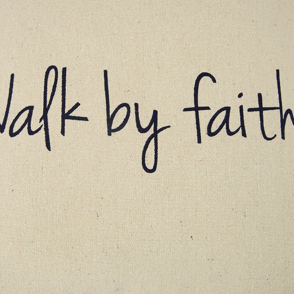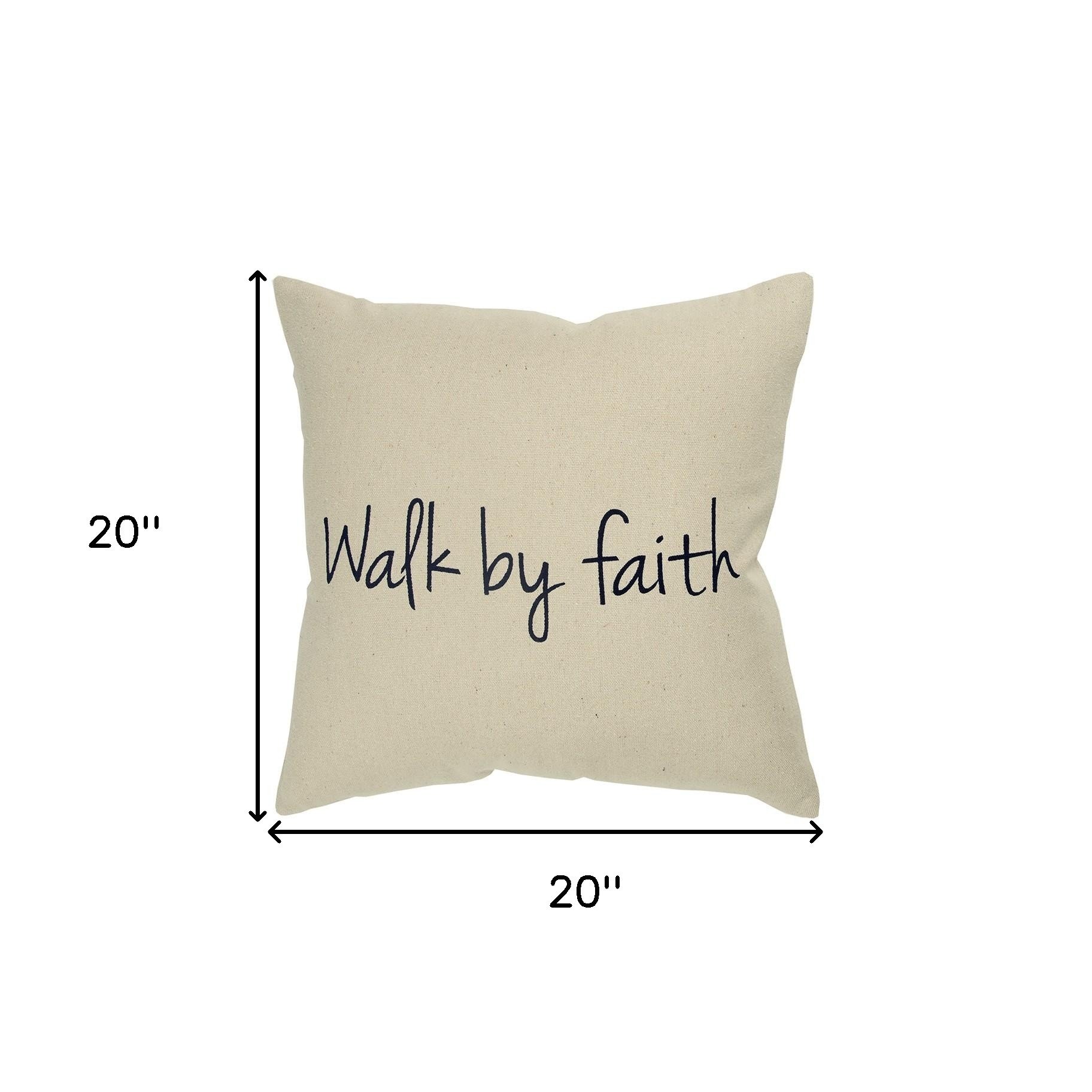 Accentuate a modern edge into your living space with this Black Taupe Canvas Walk by Faith Throw Pillow that features a subtle color palette with a thoughtful text. The spiritual sentiment that says 'walk by faith' in a jade black modern font over a taupe background, creating a visually simple yet stylish visual appeal. Skilfully crafted from cotton canvas, the pillow has a light texture with a sophisticated look while the knife edging adds to a clean and modern appearance. The poly-filled pillow is soft and durable to last long providing maximum comfort. The back is of the same cotton fabric and features a hidden zipper closure, making the pillow easy to clean and maintain. Tie together the aesthetics of your contemporary living space with this neutral-toned throw pillow placed amidst your interior décor. 20" x 20" x 6.25"