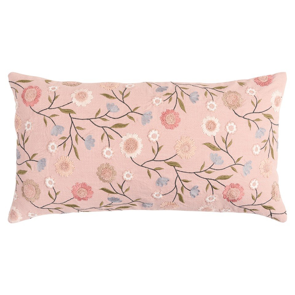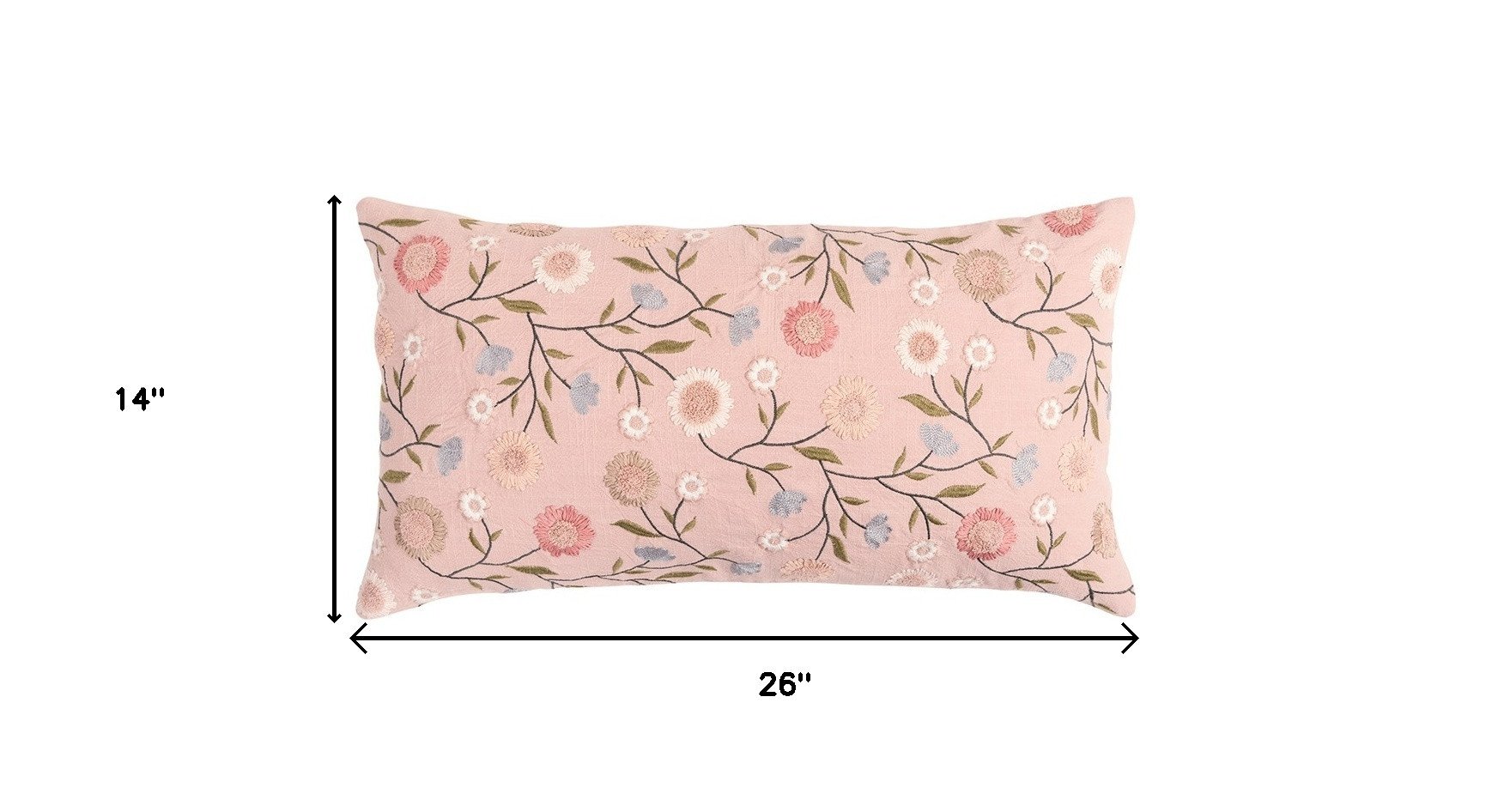 Home > 14" X 26" Blush Floral Cotton Throw Pillow With Embroidery