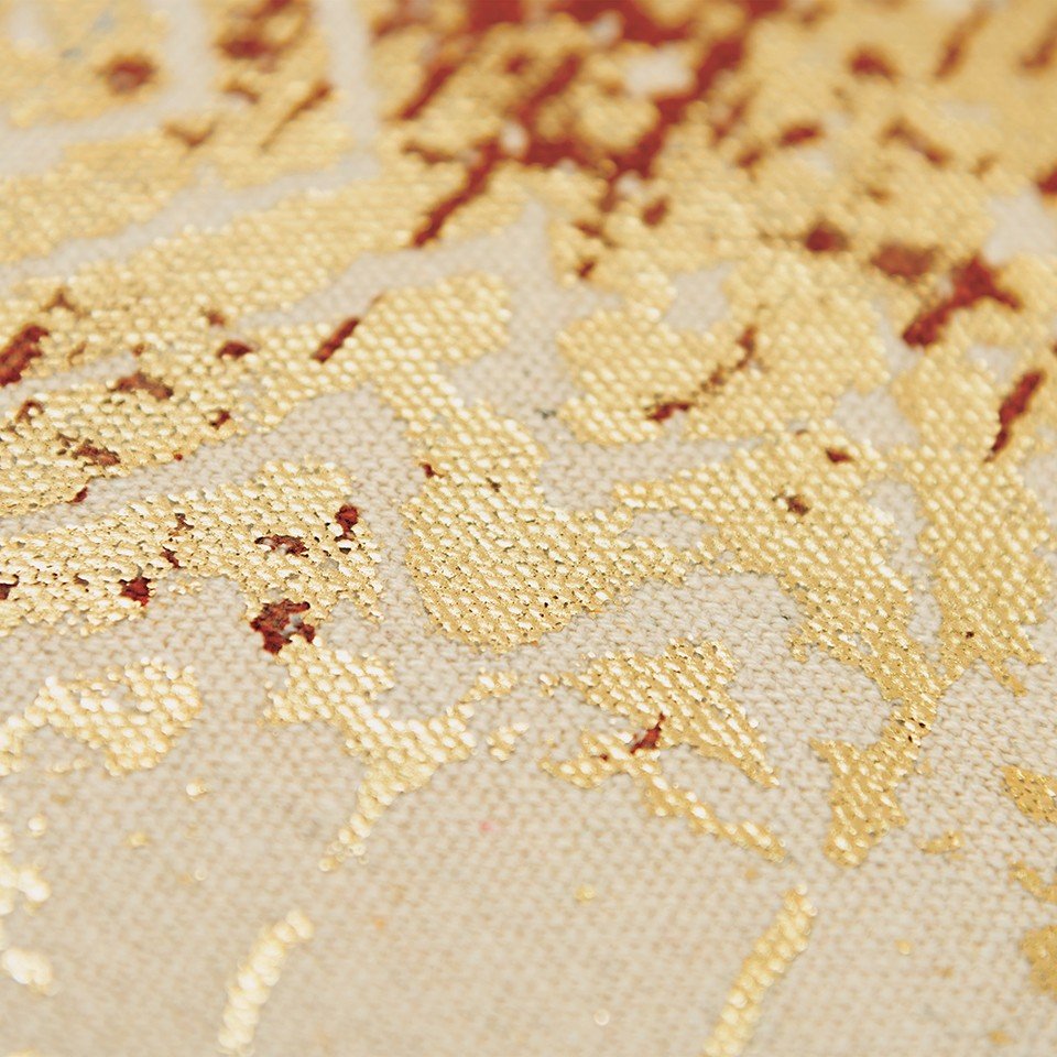 The lustrous detailing of this vintage Beige Navy Distressed Retro Modern Throw Pillow will create an eye-catching retro visual in your living room. Gold foil printed with a distressed underside, the pillow is laden with a mottled multicolor print in rust orange and navy over a beige-toned base that exudes a luxurious and timeless appeal. Crafted with a cotton canvas material, the pillow is durable and sturdy to last long and the back of the pillow is enveloped in the same material with a hidden zipper closure for ease of cleaning. The pillow features a plush polyfill insert to make it cozy and comfortable while the knife-edging ensures a clean and polished look. Personalize your home with a unique blend of retro and modern with this decorative throw pillow that will exquisitely complement any room. 20" x 20" x 6.25"