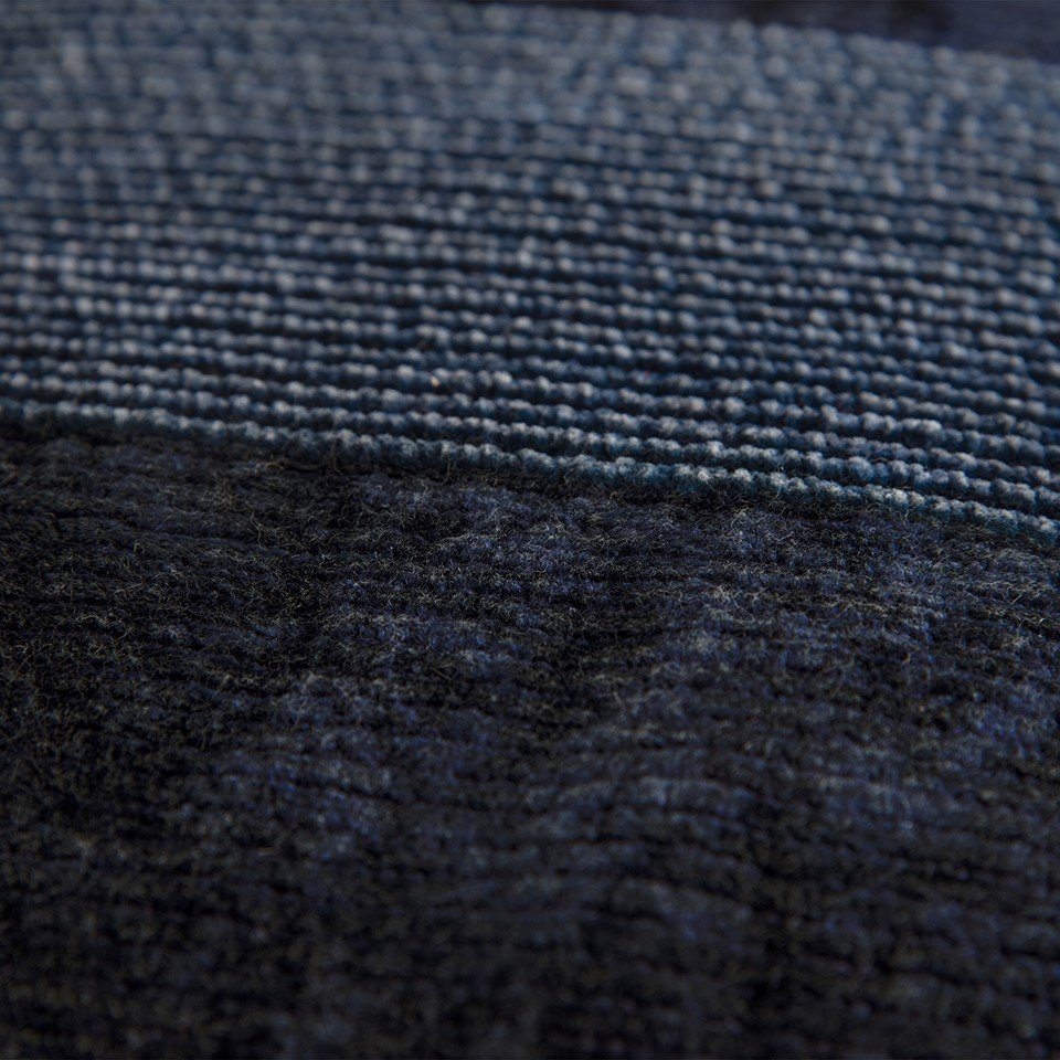 Casting the color of nightfall, this Navy Dimensional Stripe Modern Lumbar Pillow will be a nice contrasting decor if paired with neutral themes and styles. Combining navy and black, it creates modernistic striped patterns that are dimensional due to its applied cotton cords making this accent an eye-catching one. Made from the softest velvet cotton, the pillow not only ensures durability but also offers a smooth and luxurious feel on the touch while the polyfill insert gives optimum comfort and a plush look. This pillow is knife-edged to ensure crisp and clean corners for a modern appeal. The solid cotton back has a hidden zipper closure for ease of fill and cleaning. Simple yet sophisticated in its visual elements, this decorative lumbar pillow will be an element of class and comfort in your living room. 26" x 14" x 6.25"