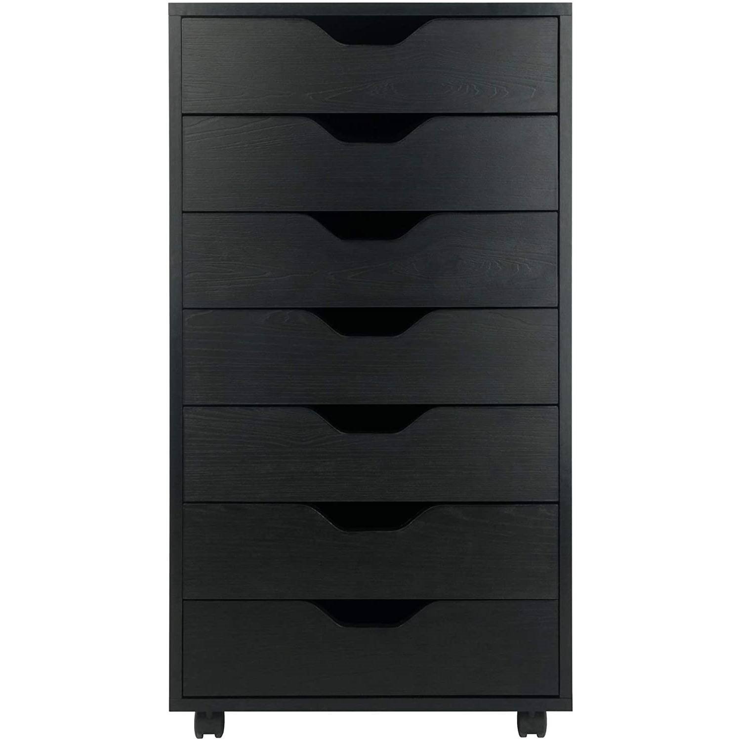 Use this Modern Scandinavian Style 7-Drawer Storage Cabinet Chest in Black Finish to help stay organized. A clean, simple design that you will find function to in just about any room of your home. Eliminate the appearance of clutter in your craft room, kitchen or kids' room. The Modern Scandinavian Style 7-Drawer Storage Cabinet Chest in Black Finish feature a multitude of drawers with cutout drawer pulls that allow for easy-open access and helps create an easily accessible storage unit. Store paper and other material used for a business in your in-home office or den. Sitting on four casters, two of which lock, allowing for easy mobility when needing to move or locking in place to use as a stationary. With a vertical design that helps to minimize the need for a lot of floor space, making this an ideal unit for a walk-in closet; store your jewelry, styling accessories, makeup pallet and brushes. Easy glide drawers with an interior dimension of 15.9 in. W x 11.73 in. D x 2.55 in. H and a weight capacity of 20lbs each. Finished in white and constructed of a combination of sturdy solid beech wood and some composite. For additional storage, pair with other organizers from this collection. Conveniently packed and shipped in 1 box, that includes the hardware necessary for assembling. Replacement part requests can be submitted directly to the manufacturer within 60 days from date of purchase.