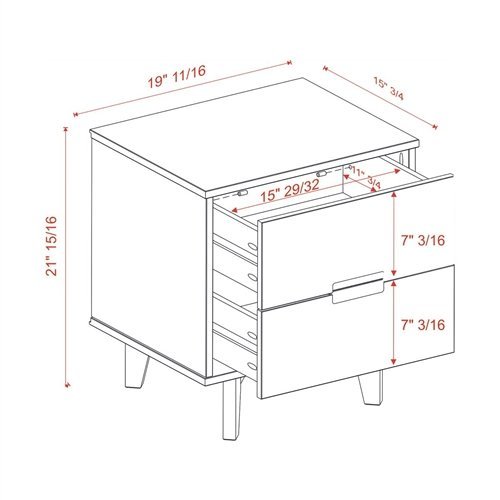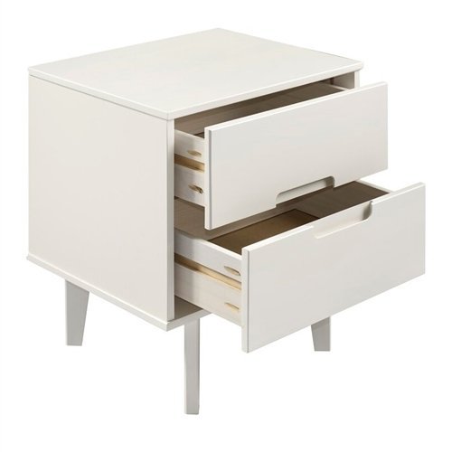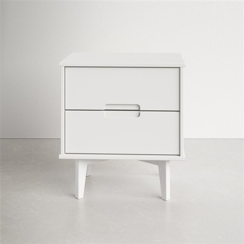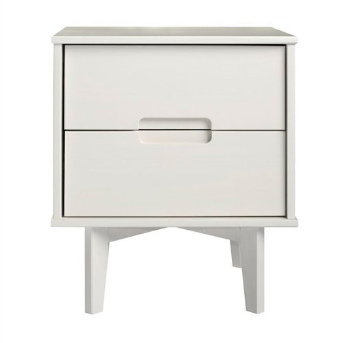 This FarmHouse 2 Drawer Solid Wood Nightstand white will add a stylish finish to your bedroom with the mid-century modern and transitional design. With a stained white finish, featuring angled legs and unique cutout handles that add to the design. Including two deep-storage drawers for putting away books, accessories, and more.