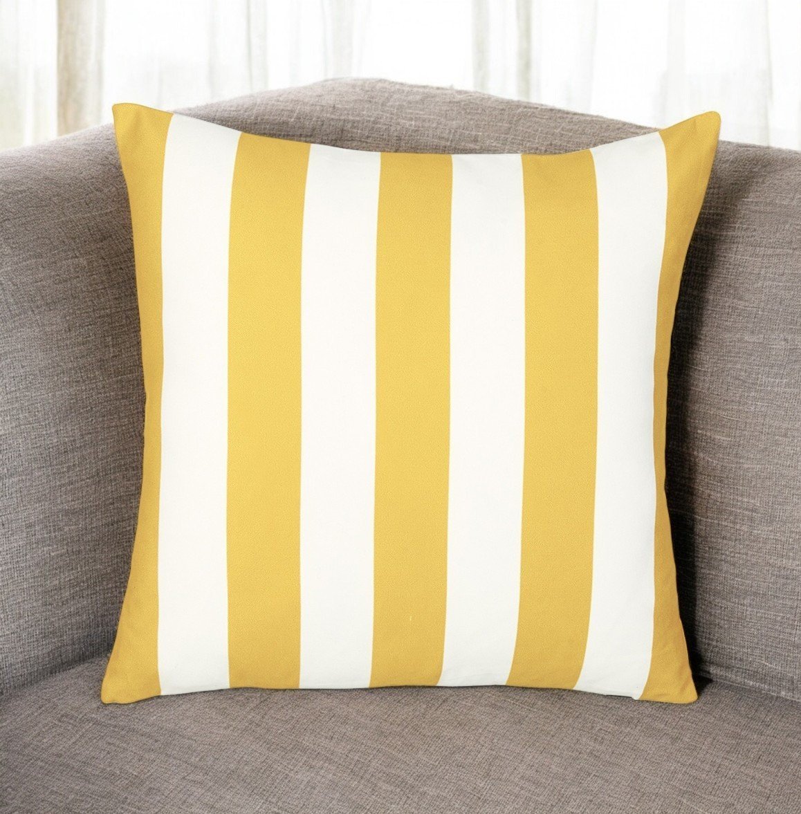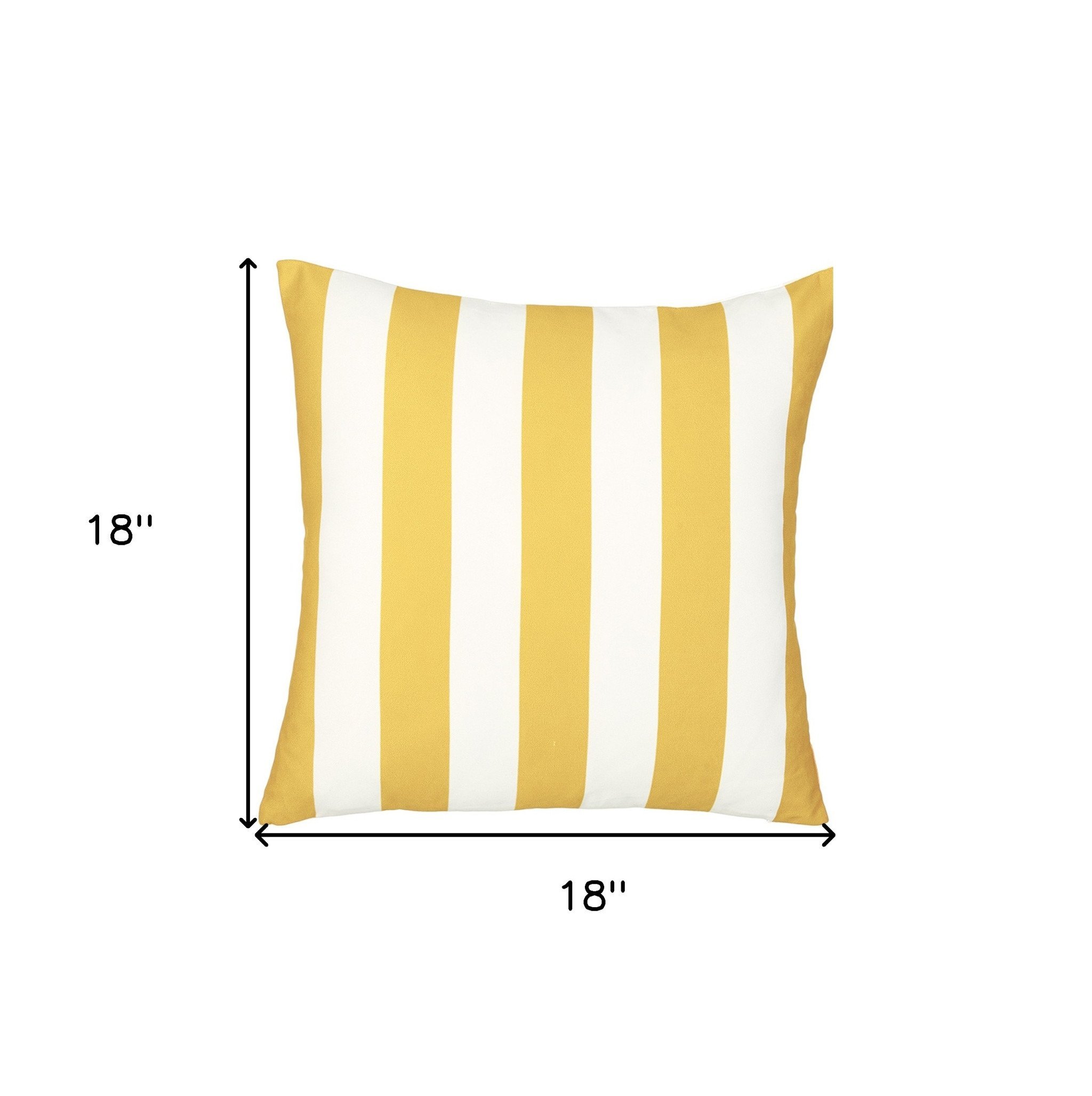 Unique and decorative, this comfortable 18-inch yellow and white striped throw pillow cover will leave a lasting impression. This yellow and white hued, accent pillow cover, represents quality construction, expertly made from durable polyester that is not only long lasting but soft to the touch as well. Decorative throw pillows not only add color and dimension to your space but can be comfy and supportive when you are lounging and cuddling as well. A great decorative accessory for your favorite chair, to accent your sofa, or to use as part of your bed ensemble. 18-inch H x 18-inch W x 1-inch D