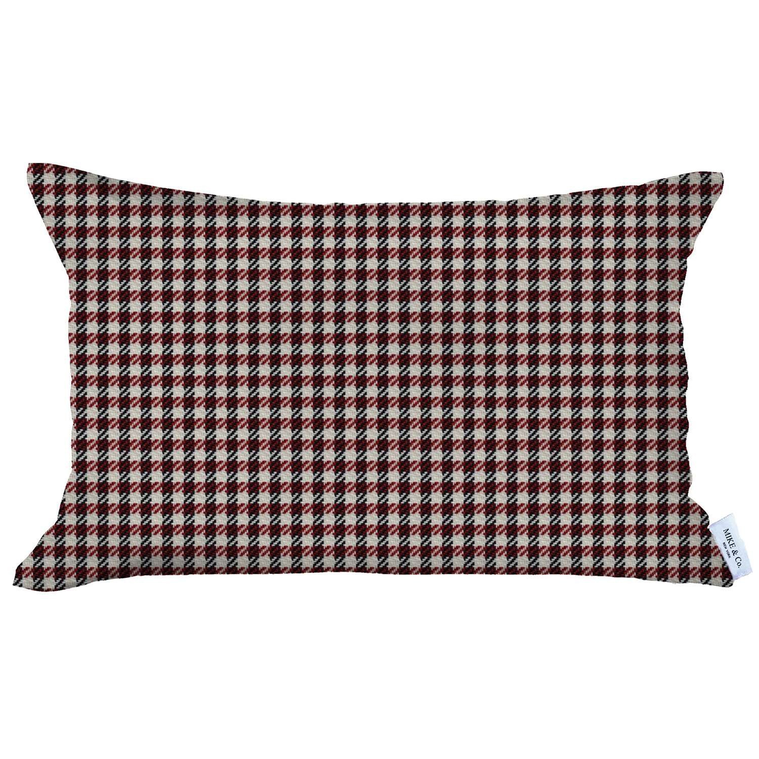 Upholding a rich and luxurious vibe, this Red Houndstooth Lumbar Throw Pillow will be a sophisticated addition to any modern or contemporary setting. Featuring the classy houndstooth checkered pattern in maroon red over an ivory base, this pillow accentuates an elegant combination. Made with care by Turkish artisans, this pillow features OEKO-TEX Standard 100 certified polyester fabric to ensure quality and product safety that will last for ages with low maintenance. The hidden zipper closure adds to a smooth finish for a soft and sumptuous feel on the touch while the soft poly filling offers maximum comfort. Besides serving as a sophisticated accent to complement any furniture, this decorative throw pillow will add a sense of class and comfort to your home. 12” x 20” x 1”