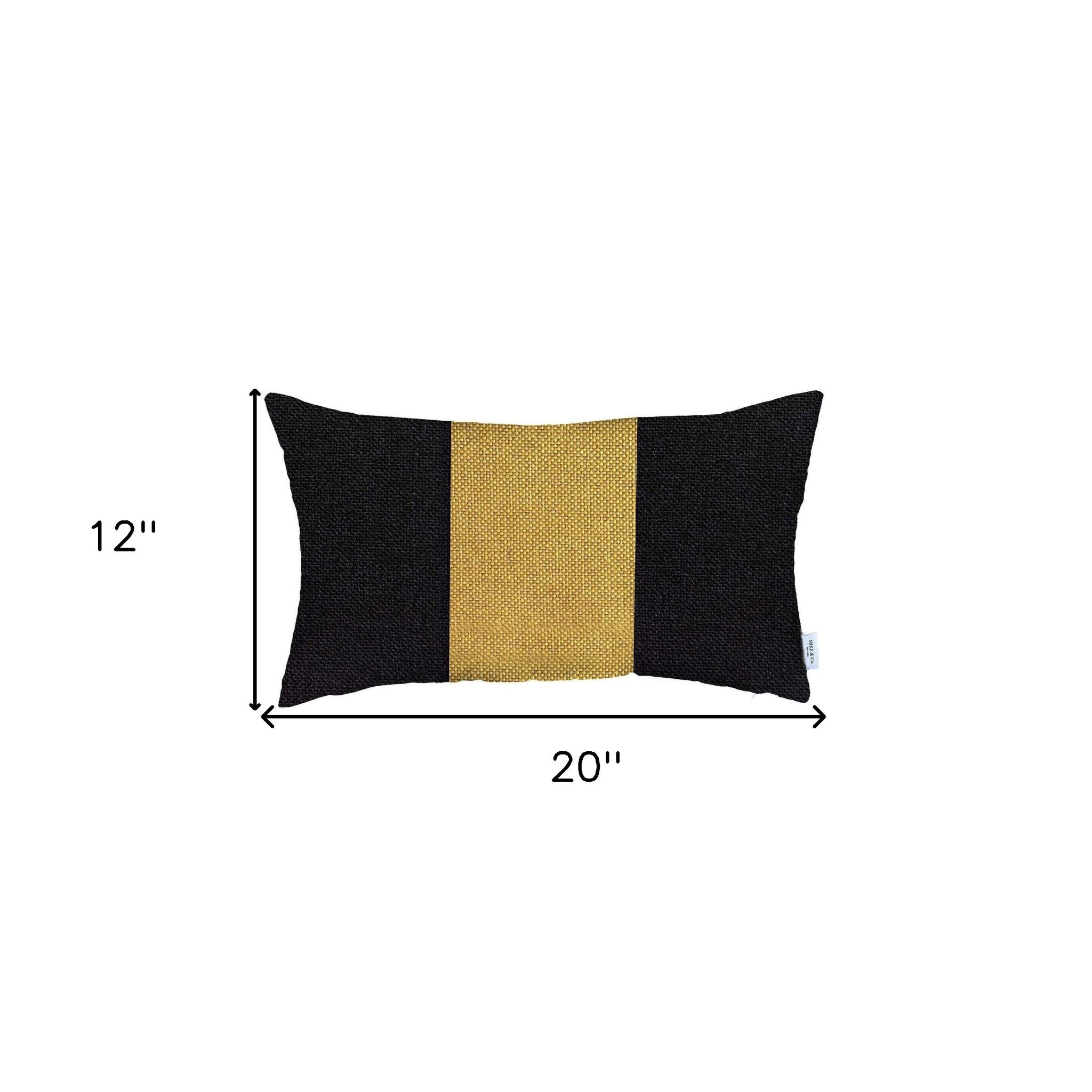 Bold and classy in pattern and palette, this Black and Yellow Midsection Lumbar Throw Pillow will add an eye-catching element to your living space. The pale yellow stripe in the middle of the charcoal black base combined with sharp linework makes for a stunning visual appeal. Handmade in Turkey with OEKO-TEX Standard 100 certified polyester fabric, this pillow’s sleek look will stay immaculate for years to come. To keep it looking beautiful, you only need to spot clean to remove stains and marks. The uniform design remains immaculate with the zipper being tucked away out of sight in a hidden closure while the poly filling insert adds to the comfort as you lean on it. Elevate your living space with this decorative lumbar pillow that is both stunning and welcoming. 12” x 20” x 1”