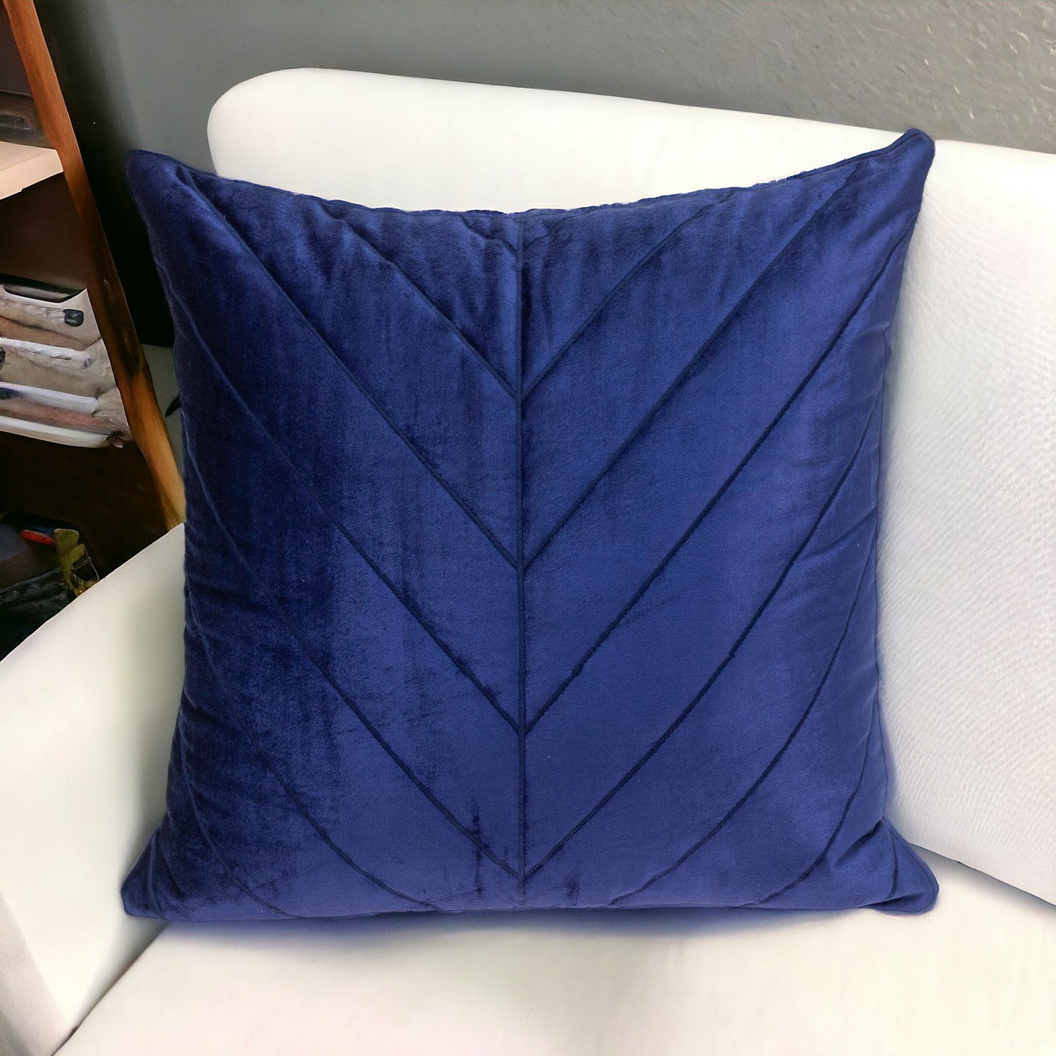 Simple, classic and elegant the Quilted Velvet Arrows Blue Decorative Throw Pillow is the quintessential model when it comes to throw pillows. Flawless in design, the pillow has a symmetrically stitched geometric design on plush velvet that portrays a refined and classic look. The lightweight and soft nature of the pillow not only provides textured comfort but also skillfully conceals a hidden zipper under the bold colored flap that is ideal for removal and inserting. Elevate the luxurious level of your home and bring a little character with this sensational and stylish tufted throw pillow. 20" x 20" x 4"