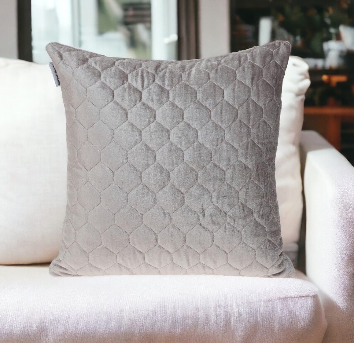 Add some artistry to your existing décor with the Taupe Tufted Velvet Quilted Throw Pillow. Crafted from a combination of soft cotton and velvet, the cushion has a rather cozy and lush exterior with a quilted geometric pattern that’s surrounds the frontal part of the pillow. It's lightweight nature makes it ideal to toss around from your favorite sofa to your extravagant bed. A hidden flap creatively conceals a zipper provided for easy removal and insertion. Enhance your interior by binging a little character to your home with this functional and luxuriously styled throw pillow. 20" x 20" x 4"