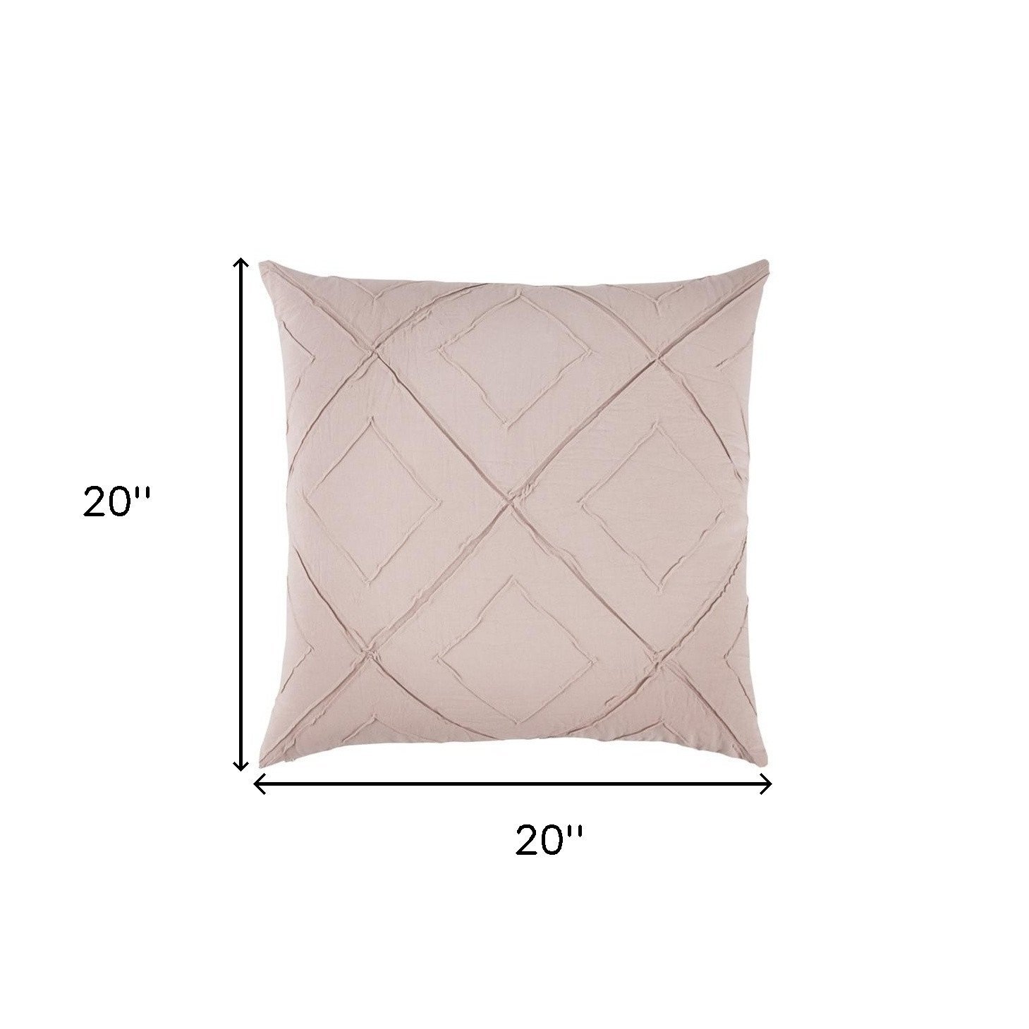 Lend a sophisticated modern touch to your interior decor with this Blush Pin Tuck Diamond Pattern Throw Pillow that features a simple but detailed design patterning for visual interest. This soft-toned blush pillow is styled with intricately stitched pintucks that delineate diamond patterns making it a unique decorative piece for any modern or contemporary setting. Perfectly crafted with high-quality cotton fabric, it promises longevity and the polyfill insert keeps the pillow firm yet super fluffy. This throw pillow features matching cotton back with a hidden zipper closure for easy washing, and the knife edge emphasizes crisp and clean corners for a classy look. Pair this decorative throw pillow with bold or bright-colored decors and it will perfectly blend in with its surrounding in style and grace. 20” x 20” x 6.25”