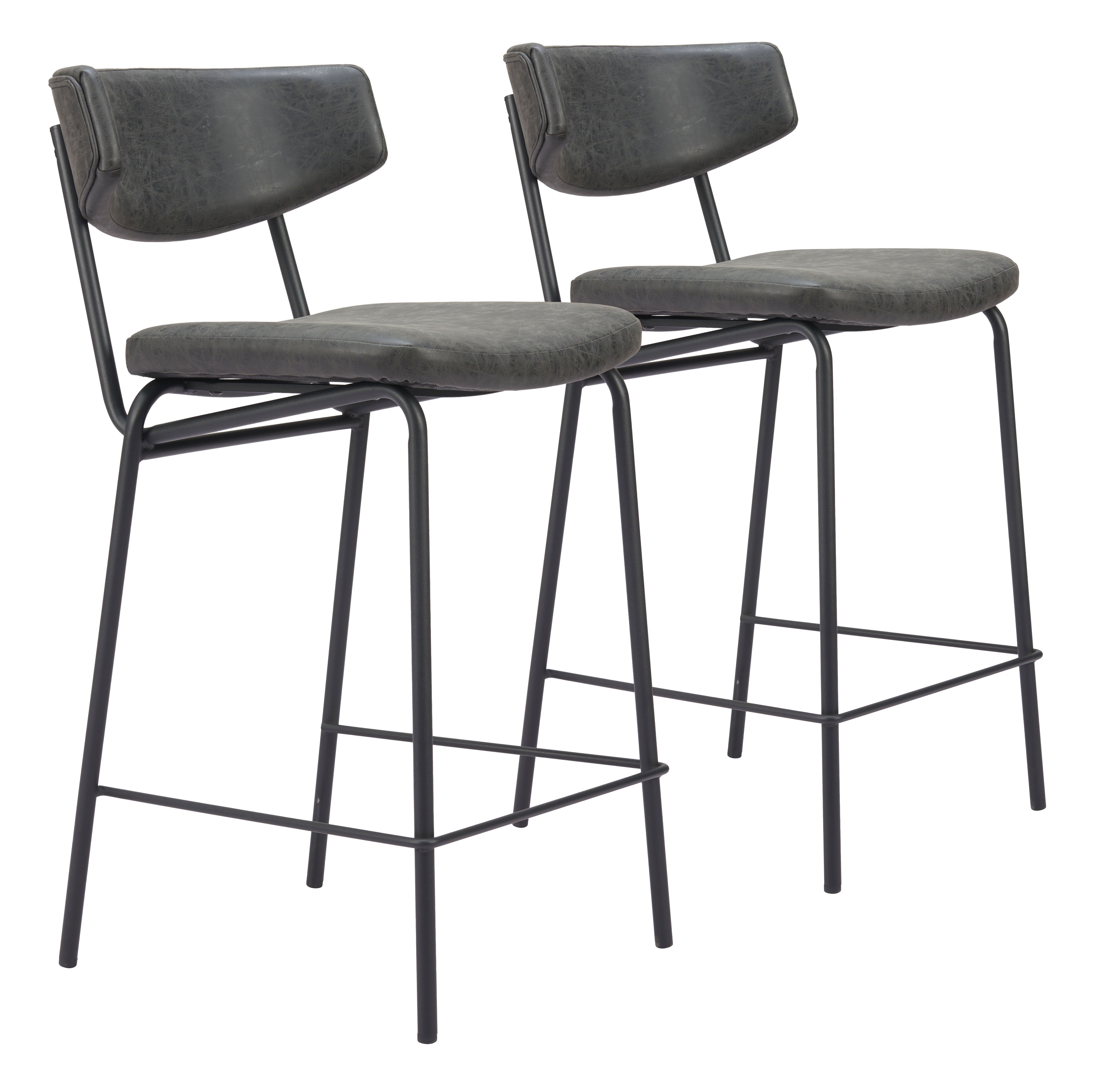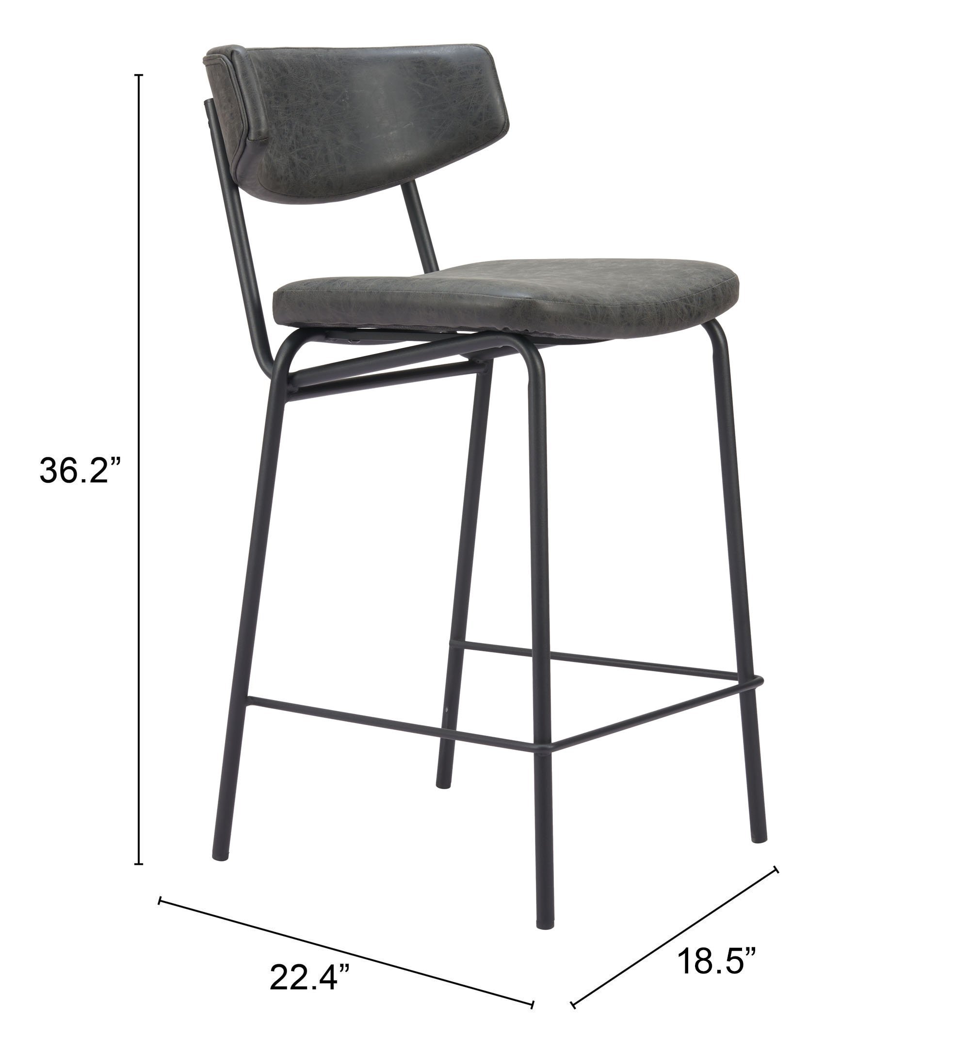 Comfy and Bauhaus, the Charon counter stool has a steel frame with powder coated steel legs and is wrapped in vinyl. This chair completes any dining room, bar or kitchen, in any design, modern minimal, or boho industrial.