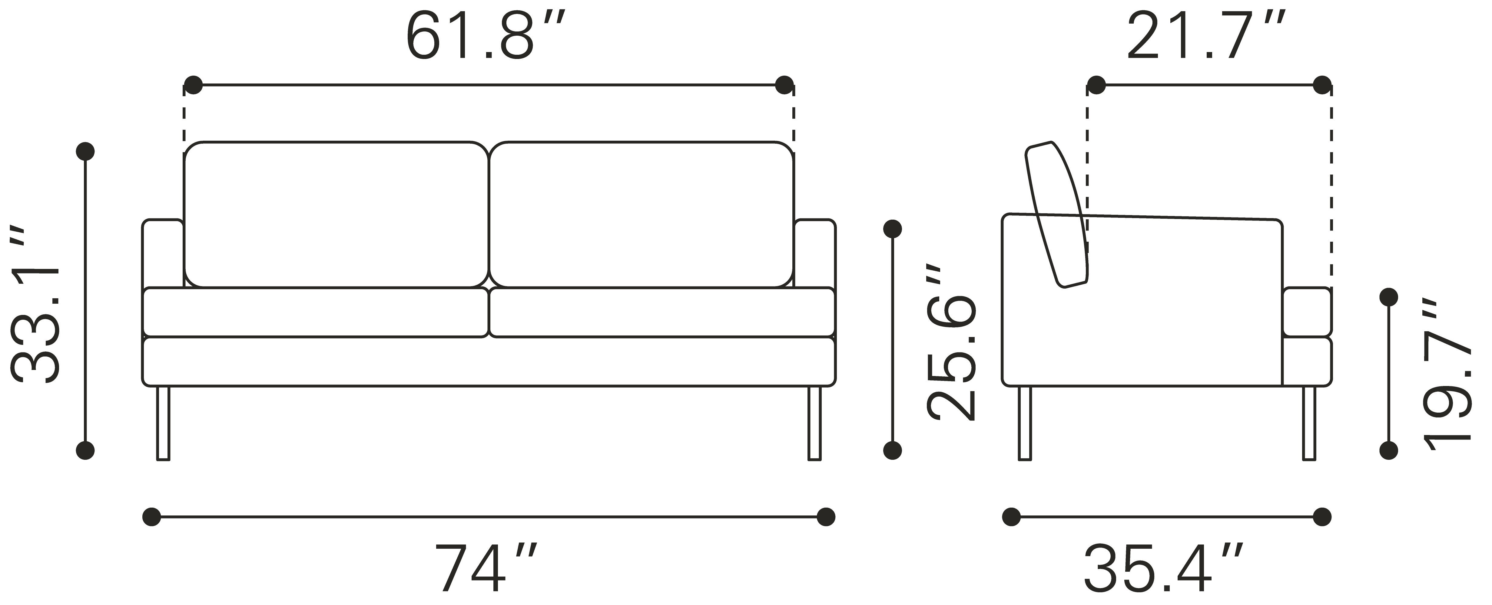 Classically modern in shape and design, the Decade Sofa is comfortable and stylish, wrapped in durable vinyl and on powder coated steel legs. This piece fits in any home or office lobby.