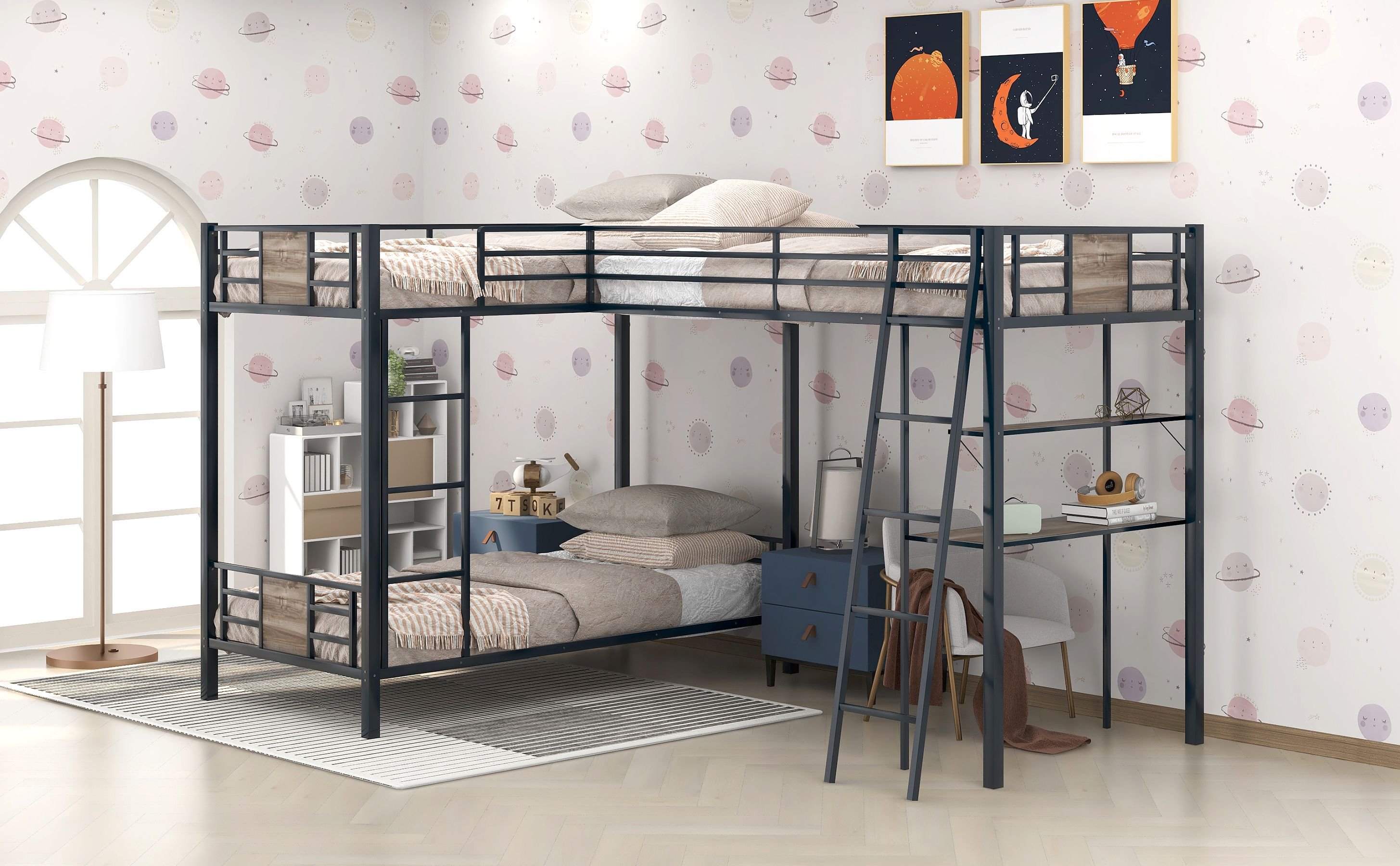 L-Shaped Twin over Twin Bunk Bed with Twin Size Loft Bed with Desk and Shelf L-Shaped Twin over Twin Bunk Bed with Twin Size Loft Bed with Desk and Shelf L-Shaped Twin over Twin Bunk Bed with Twin Size Loft Bed with Desk and Shelf