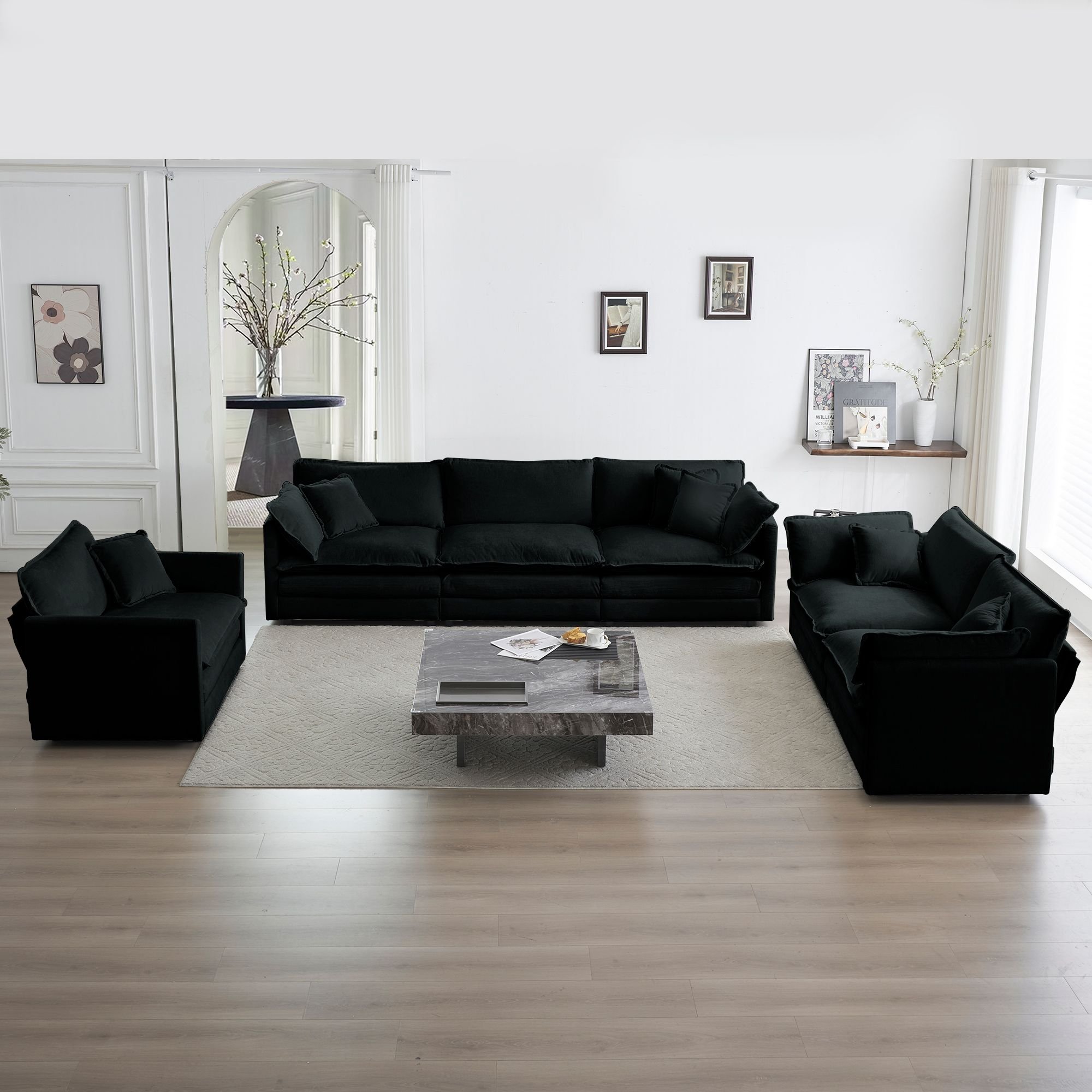 Superior comfort - Upholstered in high-end breathable Chenille fabric and high-quality sponge, with cushioned thick foam at backrest and seat for prime relaxation. Different seater sofa make you a comfort and relax living space. It can be perfect match your living room, bedroom, home office, etc.