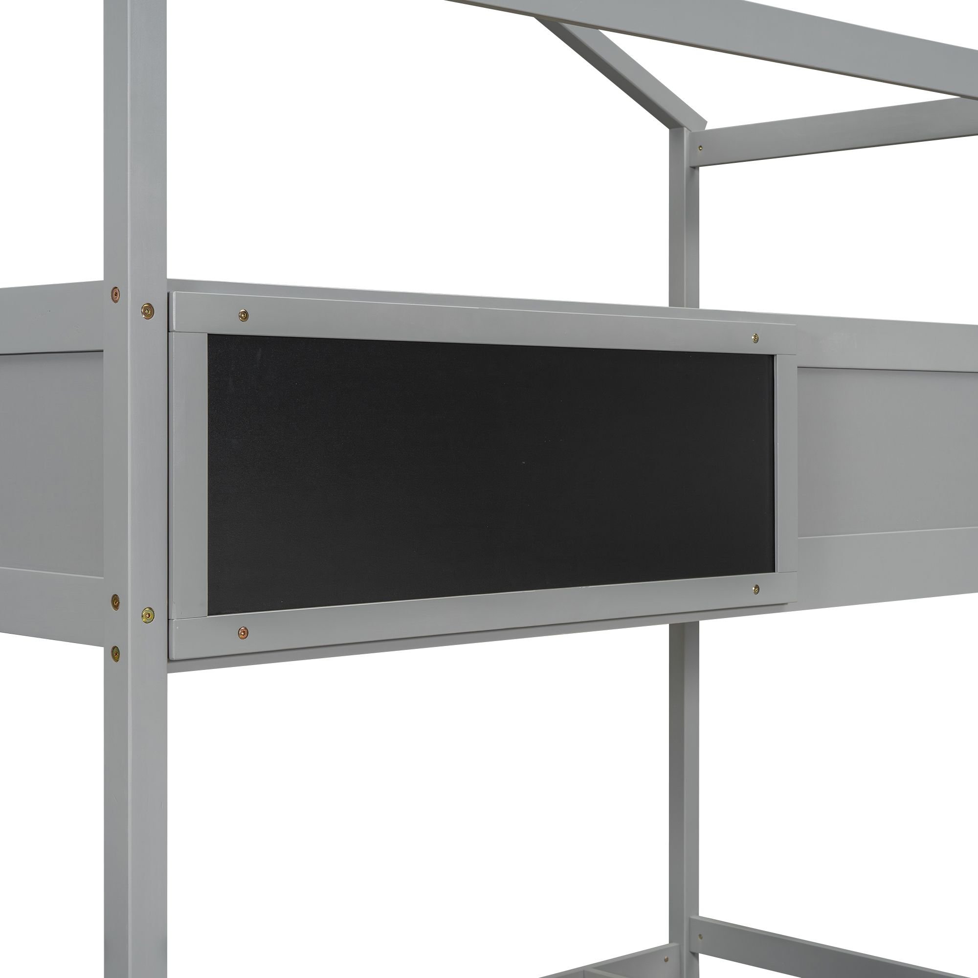 Home > Twin over Full House Bunk Bed with Storage Staircase and Blackboard