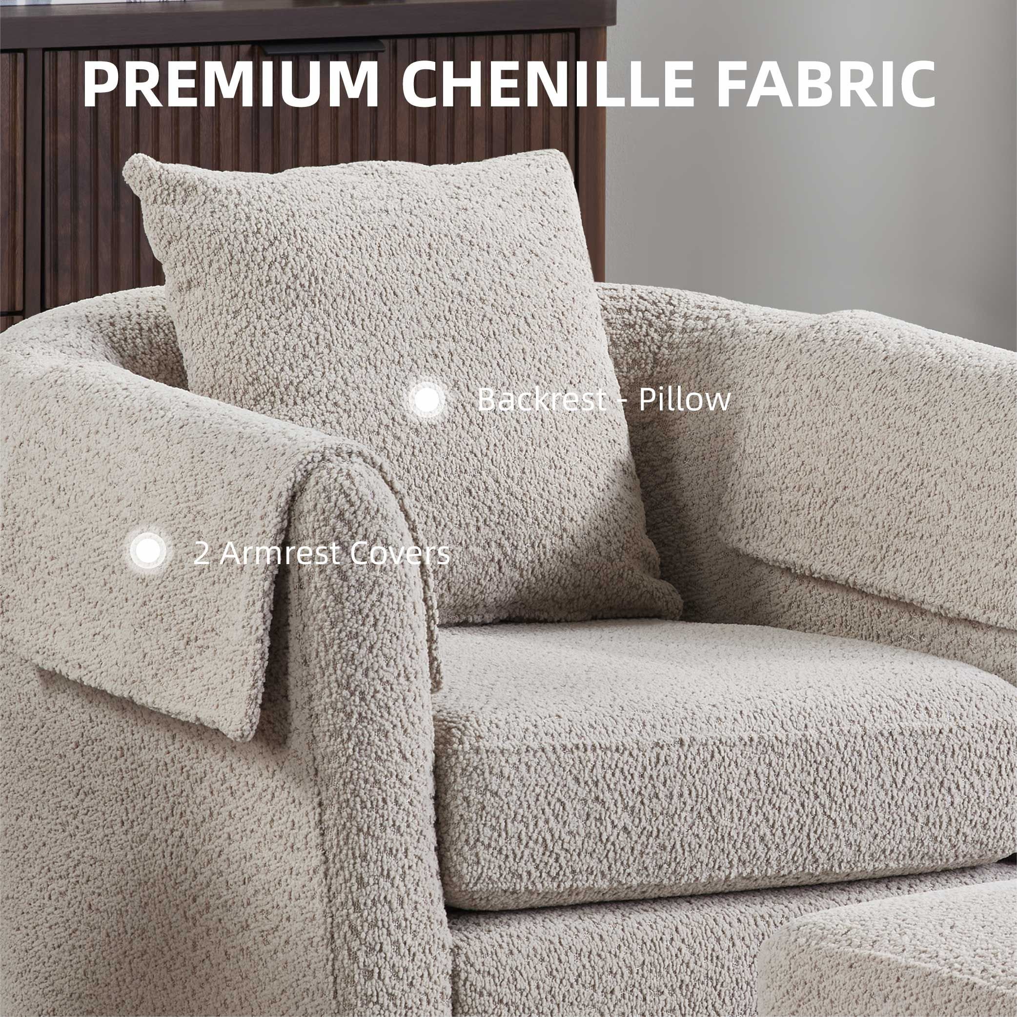 Swivel Accent Chair with Ottoman Set, Modern Chenille Barrel Armchair with Removable Back Pillow & 2 Armrest Covers for Living Room, Bedroom, Office