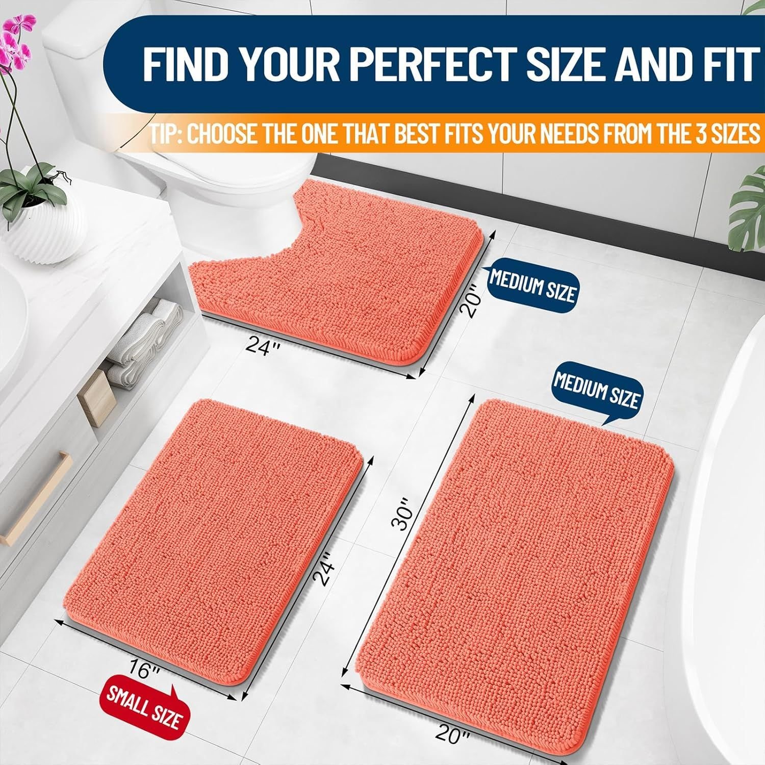 Home > Bathroom Rugs 30x20, Extra Soft Absorbent Chenille Bath Rugs, Rubber Backing Quick Dry, Machine Washable Bath Mats for Bathroom Floor, Tub and Shower