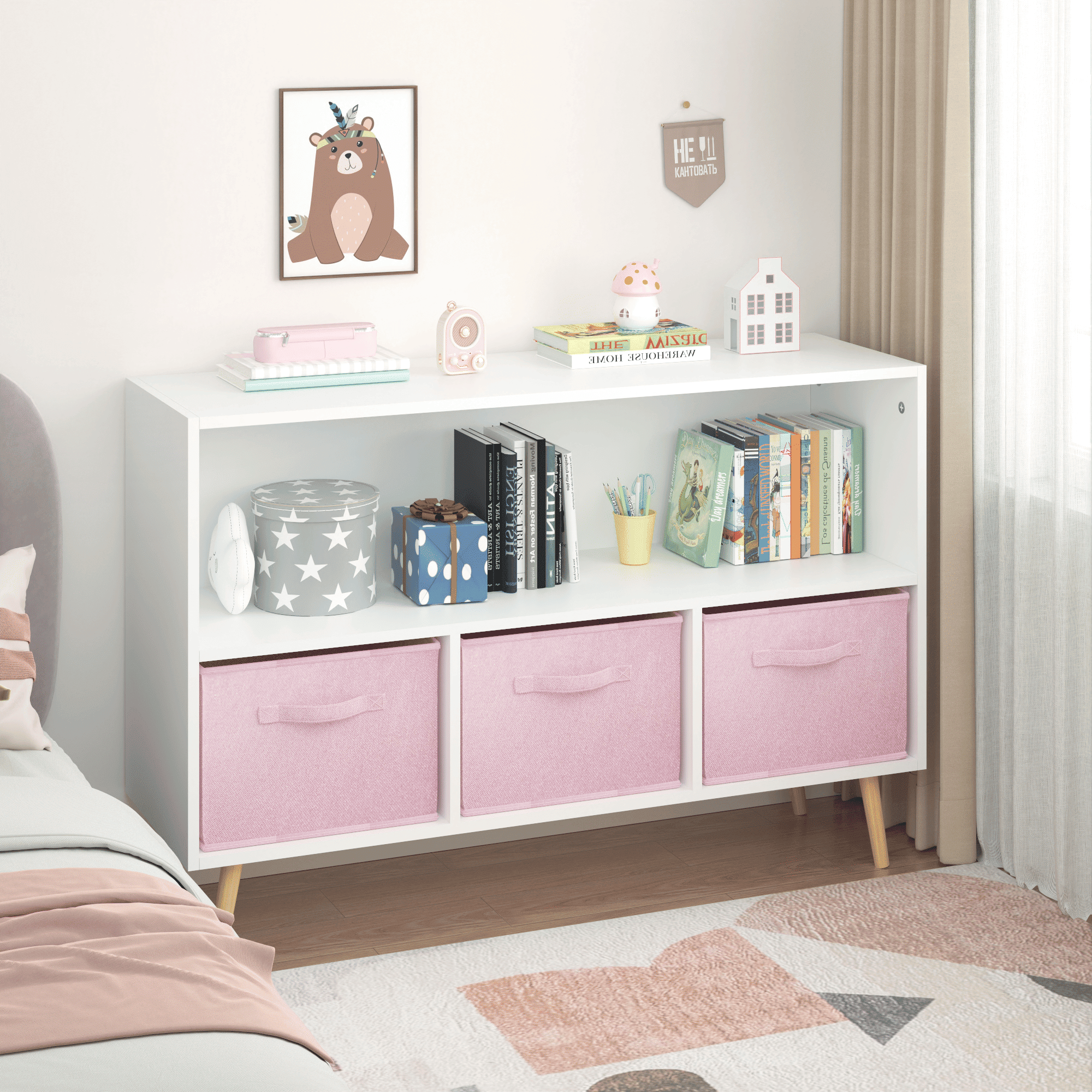 3.Modern design kid's bookshelf is perfect for the living room, children's room, etc.